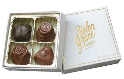 In 1944, Bill and Helen Grace opened their first chocolate store in San Pedro, CA in celebration of her 30th birthday. Before long, with careful attention to quality and excellence, they developed a successful chain of retail chocolate stores. Over the years, business has grown to include not only retail stores, but mail order, wholesale, corporate gifts, seasonal stores, and much more. In addition, Helen Grace Chocolates are sold nationwide to schools and other groups to raise funds for their valuable programs. Much has changed since the opening of the first store, but what has endured is the same commitment to making the finest confections. Helen Grace Chocolates uses the freshest nuts, fruits, dairy products along with a proprietary blend of premium Belgian and American chocolate. Taste the difference!