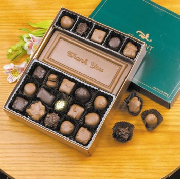 - A great way to say Thank You to that special person !- Containing cherrie cordials, caramels, soft crème centers,nut clusters, and meltaways